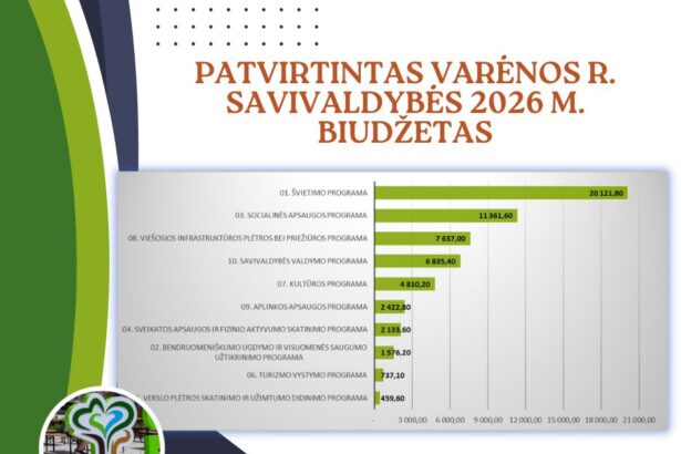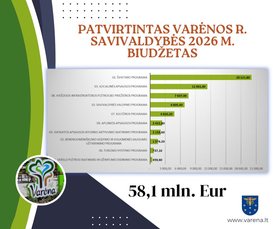 Varėnos rajono savivaldybės taryba patvirtino svarbiausius savivaldybės dokumentus – 𝟐𝟎𝟐𝟔–𝟐𝟎𝟐𝟖 metų biudžetą ir strateginį veiklos planą