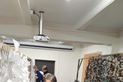 Varėnos Šaulių namuose maskuojamieji tinklai pinami skambant lietuviškoms dainoms