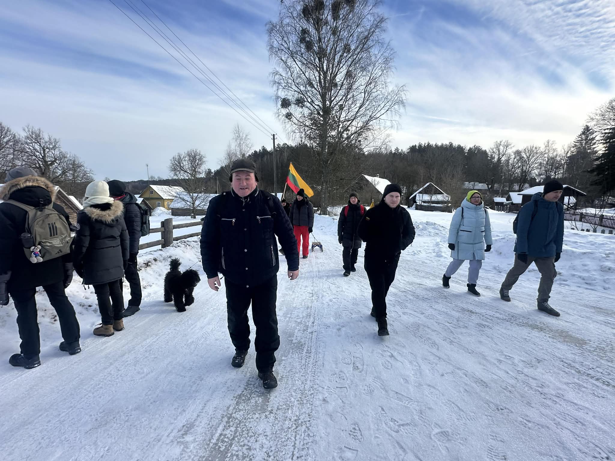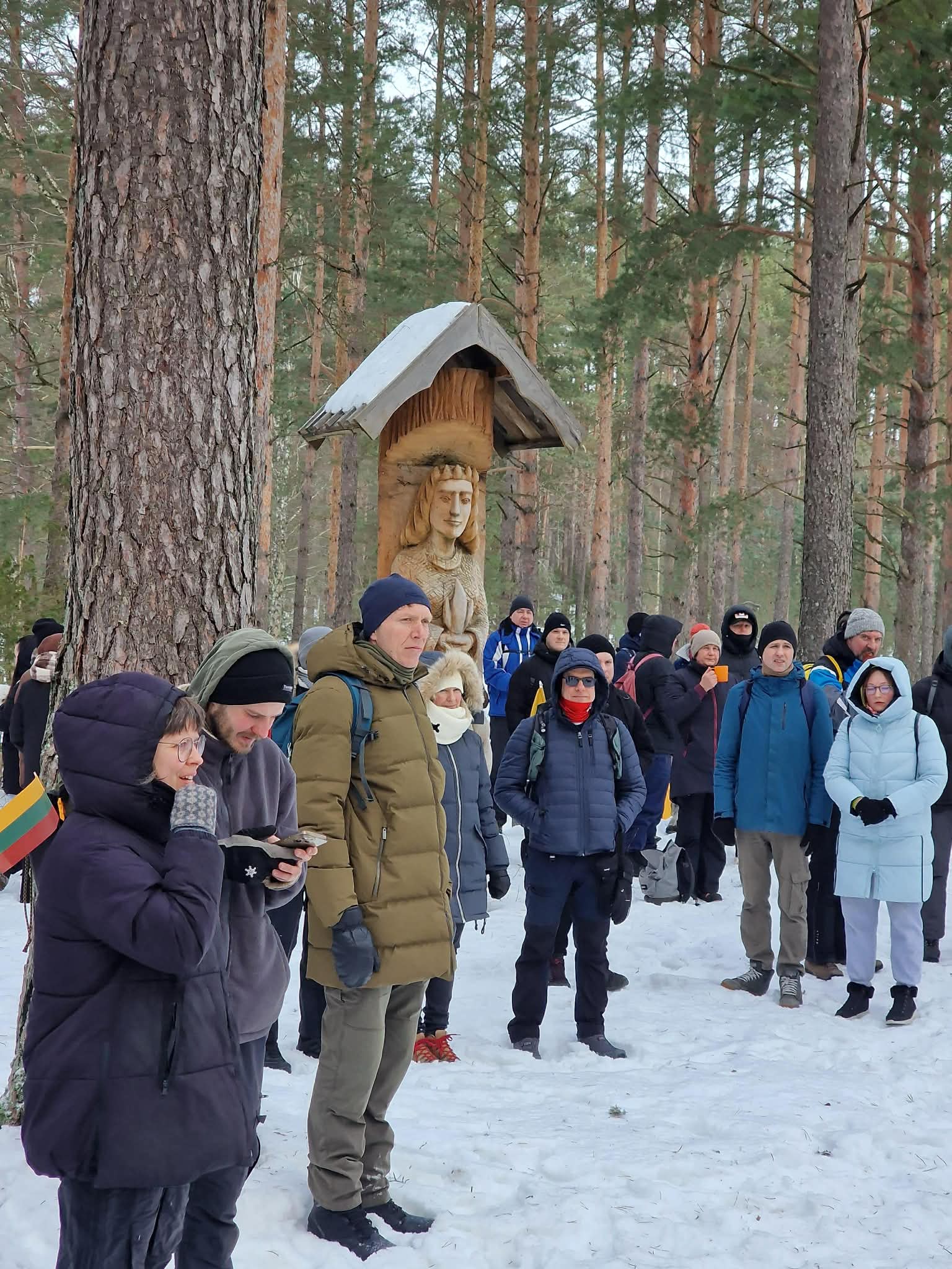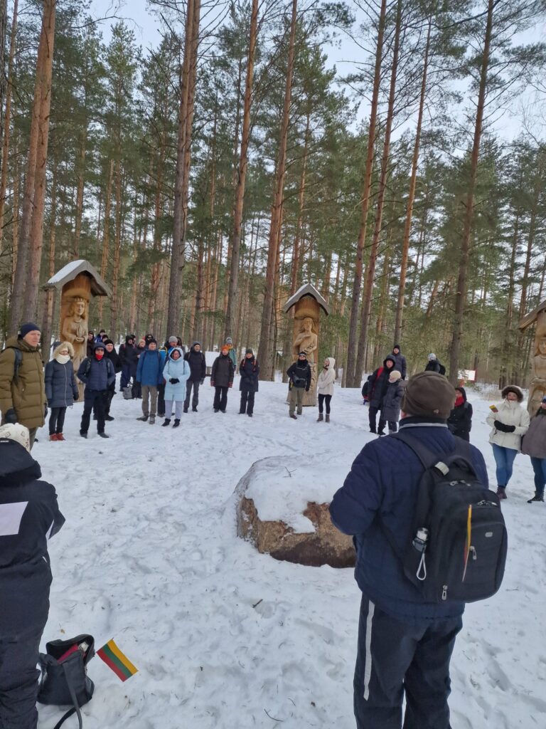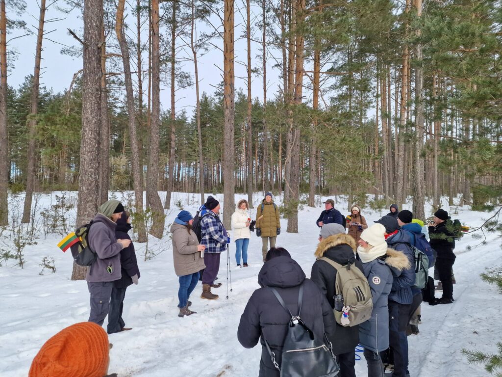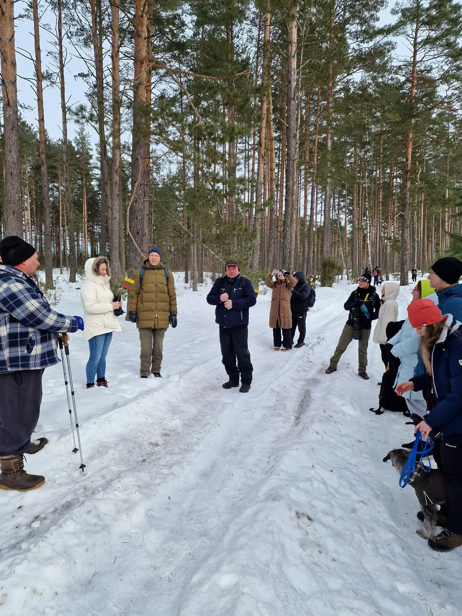 Nors žiemiška žvarba kando skruostus, bet keliauninkams šalta nebuvo – buvo smagu sparčiai keliauti apsnigto miško keliu. Kita įdomi žygio stotelė buvo Stėgalių stumbrynas. Pasigrožėję didingaisiais miško galiūnais, žygeiviai sugužėjo į stumbrininko namą ne tik sušilti, bet ir pasivaišinti skania koše ir karšta arbata. Stumbrininko Vytauto Jeremičiaus pasakojimai apie čia žiemojančius stumbrus ir jų priežiūrą sudomino ne vieną.