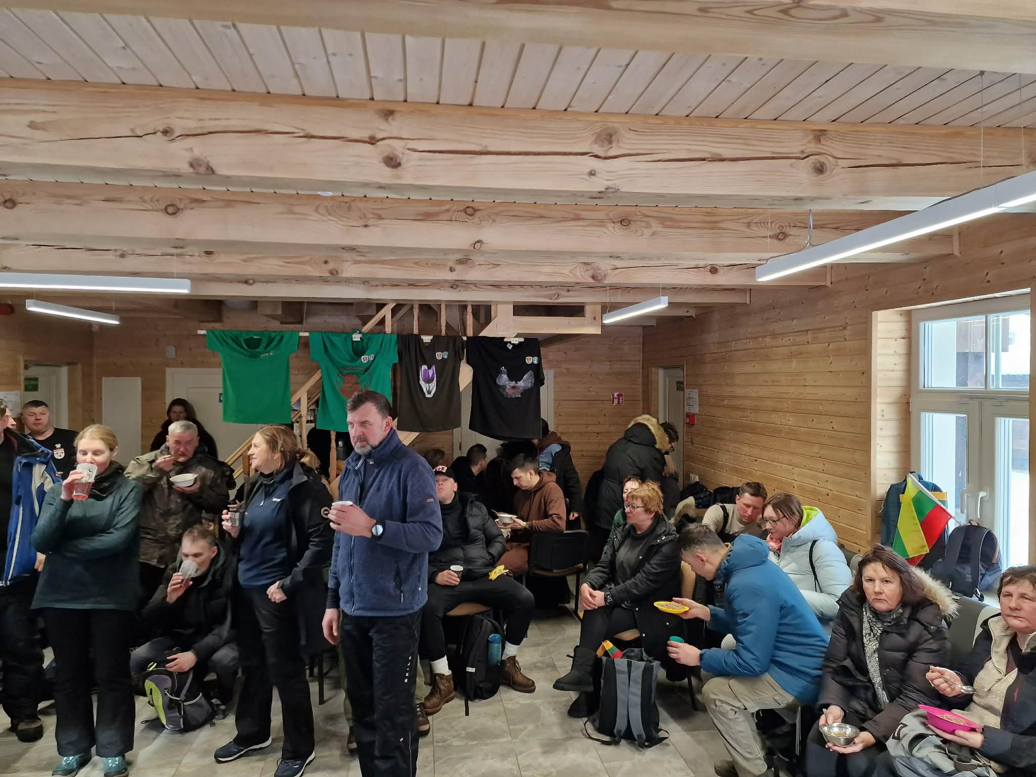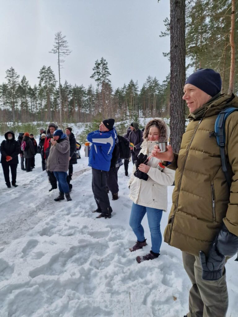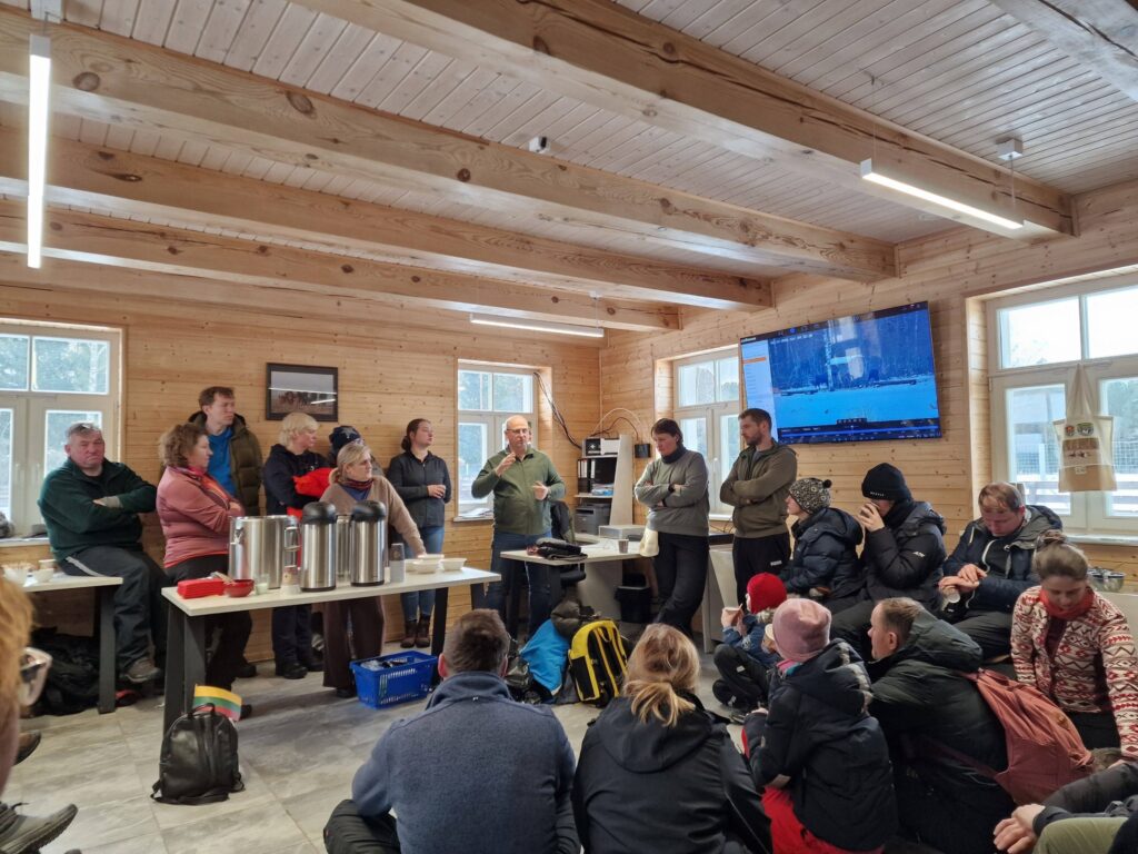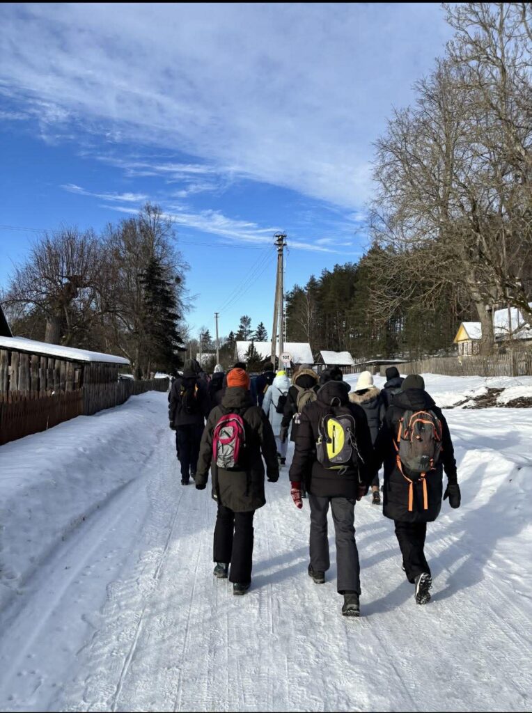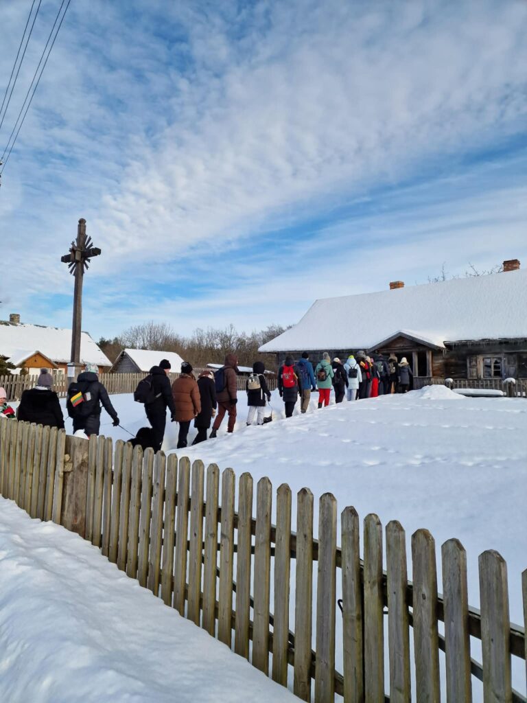 Nors žiemiška žvarba kando skruostus, bet keliauninkams šalta nebuvo – buvo smagu sparčiai keliauti apsnigto miško keliu. Kita įdomi žygio stotelė buvo Stėgalių stumbrynas. Pasigrožėję didingaisiais miško galiūnais, žygeiviai sugužėjo į stumbrininko namą ne tik sušilti, bet ir pasivaišinti skania koše ir karšta arbata. Stumbrininko Vytauto Jeremičiaus pasakojimai apie čia žiemojančius stumbrus ir jų priežiūrą sudomino ne vieną.