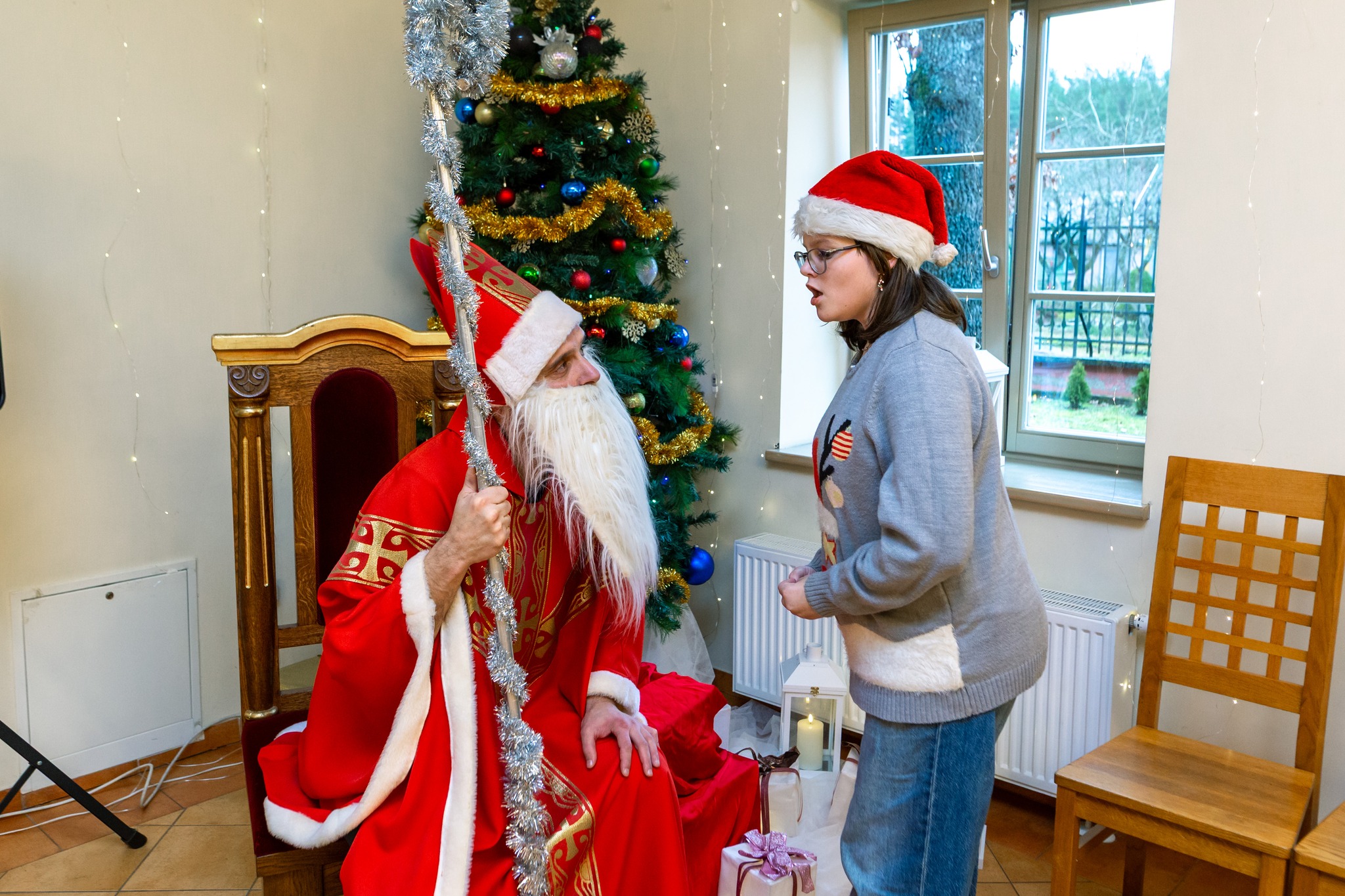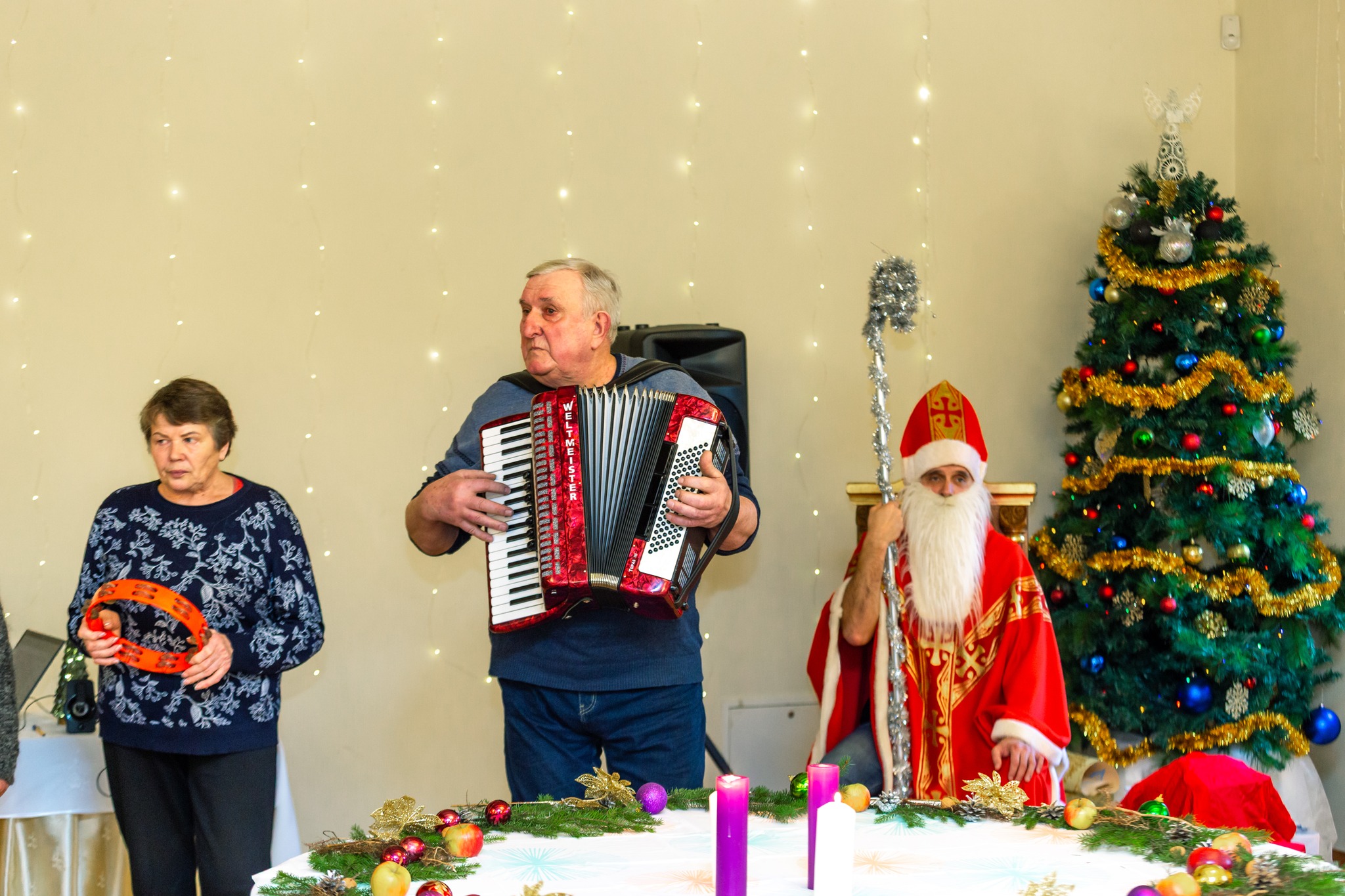 Klebonas visiems linkėjo sveikatos, šviesos, tikėjimo ir vilties. Kiekvienas buvo apdalintas kalėdaičiu. Šeimyntrobėje vykusioje popietėje gausus būrys parapijiečių ir jų draugų dainavo Advento dainas, bendravo ir vaišinosi. O kaip gi be Kalėdų senelio, kuris buvo tikrai dosnus.