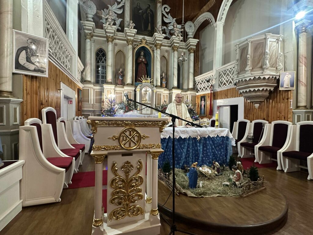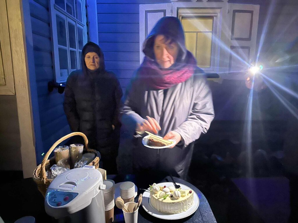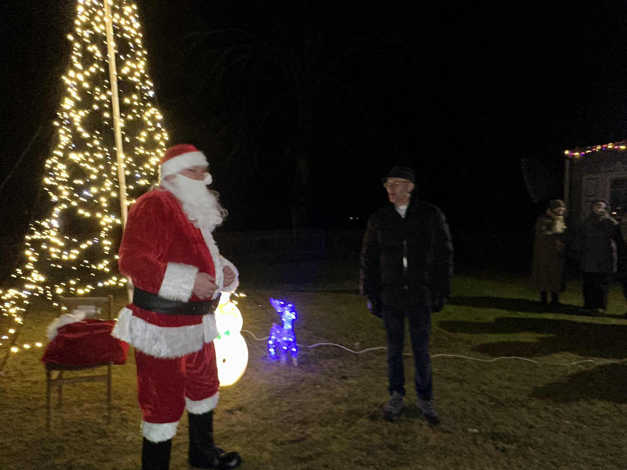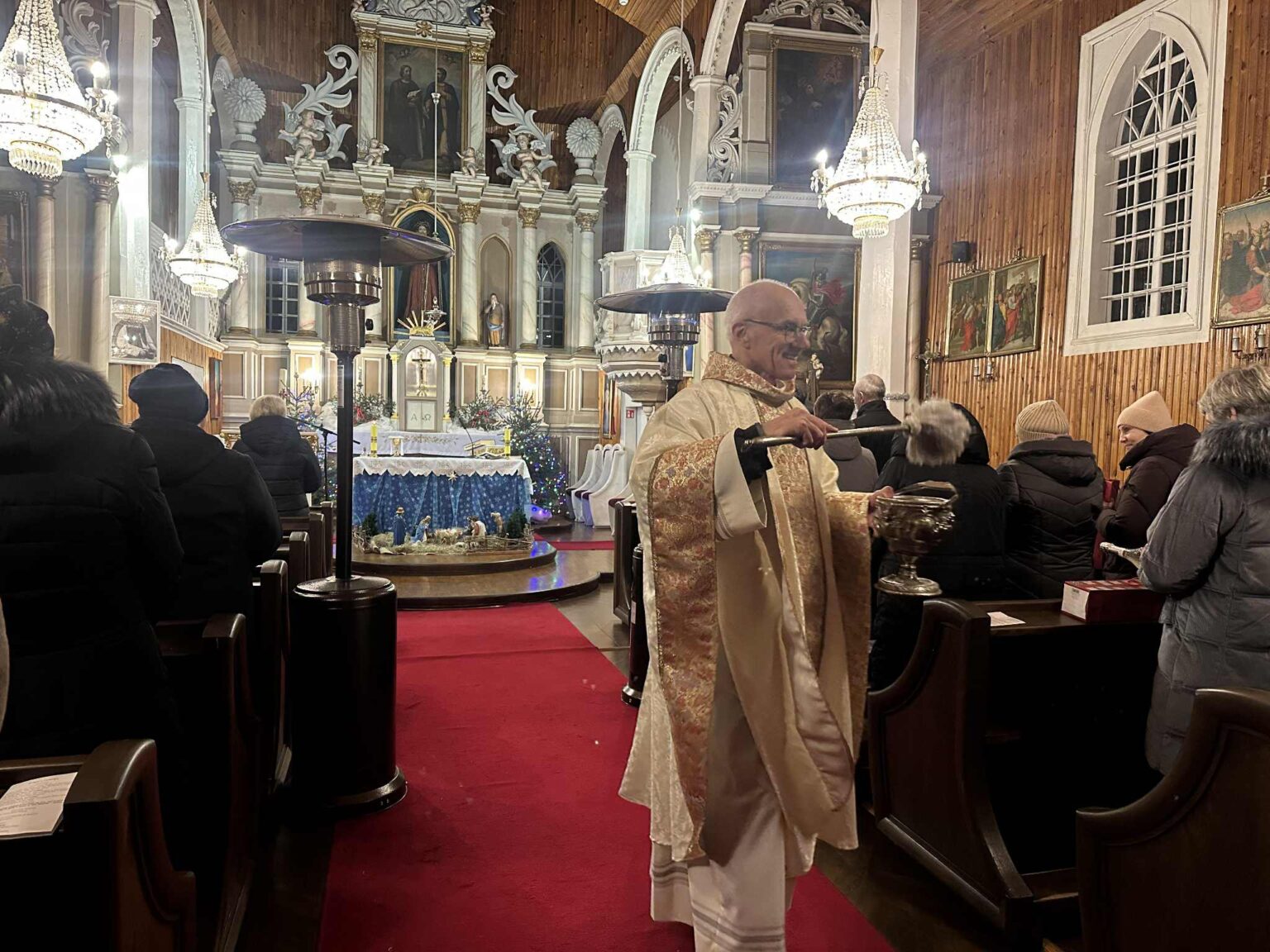 Šv. Mišių pabaigoje klebonas palaimino tikinčiųjų atsineštą vyną. Buvo prisiminta žydų patarlė: ,,Jei nori gyventi, gerk vandenį, jei nori gerai gyventi, gerk vyną”. Po Šv. Mišių į klebonijos kiemą prie eglutės pakvietęs klebonas Bronius dovanojo išties jaukų ir mielą vakarą. Čia buvo net ir Kalėdų senelis su dovanėlėmis, kurias gavo kiekvienas, padeklamavęs eilėraštį. Pasivaišinus karštu vynu ir skaniu kalėdiniu tortu, buvo smagu pabendrauti. Ačiū kunigui Broniui už svetingumą ir vaišingumą bei kiekvienam buvusiam už bendrystę! Išties kiek nedaug reikia sukurti bendrystės šventę – tik didelio noro suburti ir svetingai sutikti.