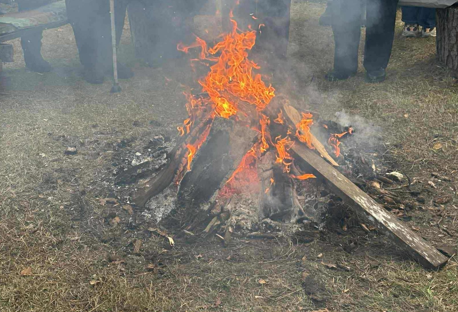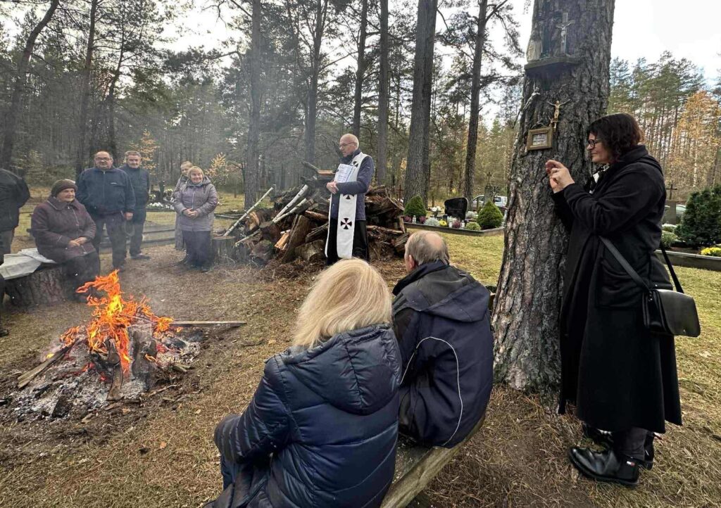 Iš viso aštuonias dienas popiet tuo pačiu metu Margionių kaimo žmonės susirenka ir sustoja toje pačioje vietoje kapinaičių viduryje. Kas ateina pirmas, užkuria laužą. Malkų jam visada būdavo parūpinta iš anksto. Dažniausiai jos būdavo supjaunamos iš kapinėse augančių senų medžių, būdavo sudeginami ir seni, sutręšę kryžiai, kai pritrūkdavo, atsinešdavo iš namų… Jau penktus metus Vėlinių laužą jie kūrena iš tos pačios didelės senos drevėtos pušies, prie kurios daugelį metų šitiek melstasi. Kai senolė pušis nuvirto, kaimo vyrai iš jos priskaldė didžiausią krūvą malkų, kurių, kaip sako margioniškiai, užteks visų jų gyvenimo Vėlinių maldoms. Dabar žmonės meldžiasi prie šalia augančios pušies. Ant jos tarsi altorėlį padarė – pritvirtino kryželį, Kristaus kančią.