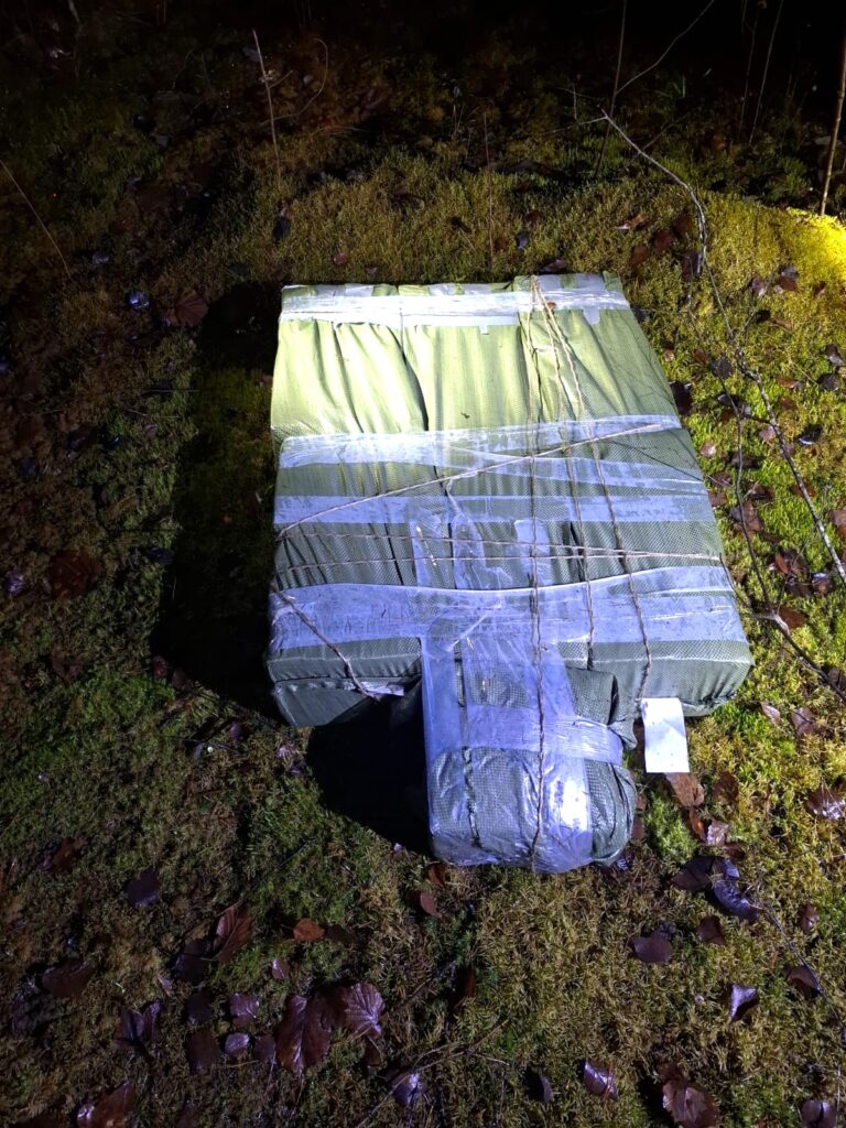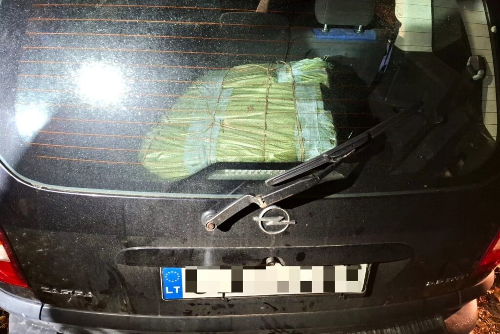 Antradienį ties Paąžuolės kaimu (Varėnos r.) tarnybą vykdę VSAT Varėnos pasienio rinktinės Aleksandro Barausko pasienio užkardos pareigūnai miške pastebėjo automobilį „Opel Zafira“. Jo bagažinėje pasieniečiai rado du ryšulius, o šalia automobilio gulėjo dar vienas ryšulys, aptrauktas žalios spalvos polietileno plėvele.