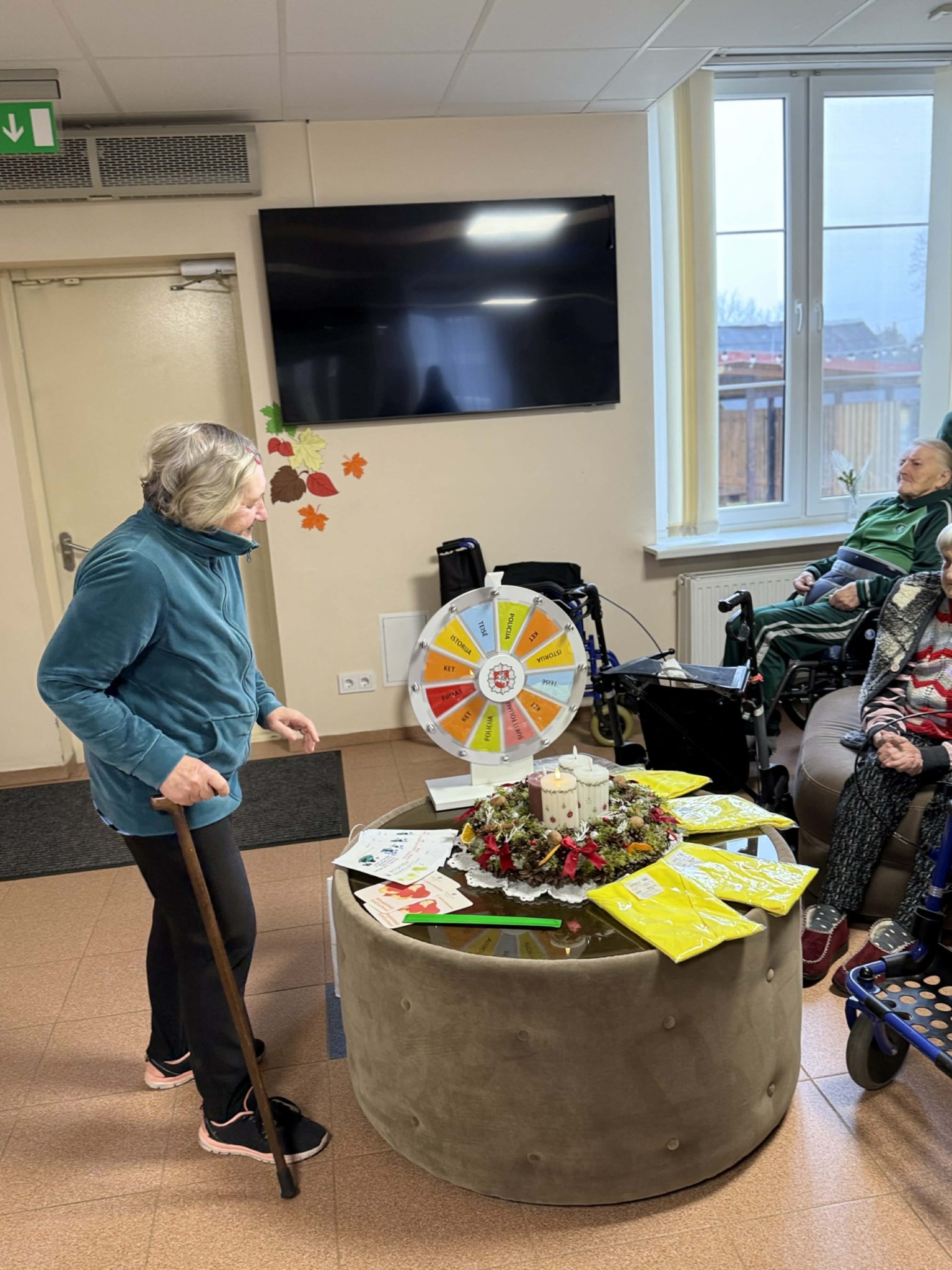 Renginio metu gyventojai dalyvavo nuotaikingoje viktorinoje. Sukdami „Laimės ratą“ jie atsakinėjo į įvairius klausimus, kurie ne tik lavino žinias, bet ir skatino smagų, draugišką bendravimą. Visi gavo dovanų.