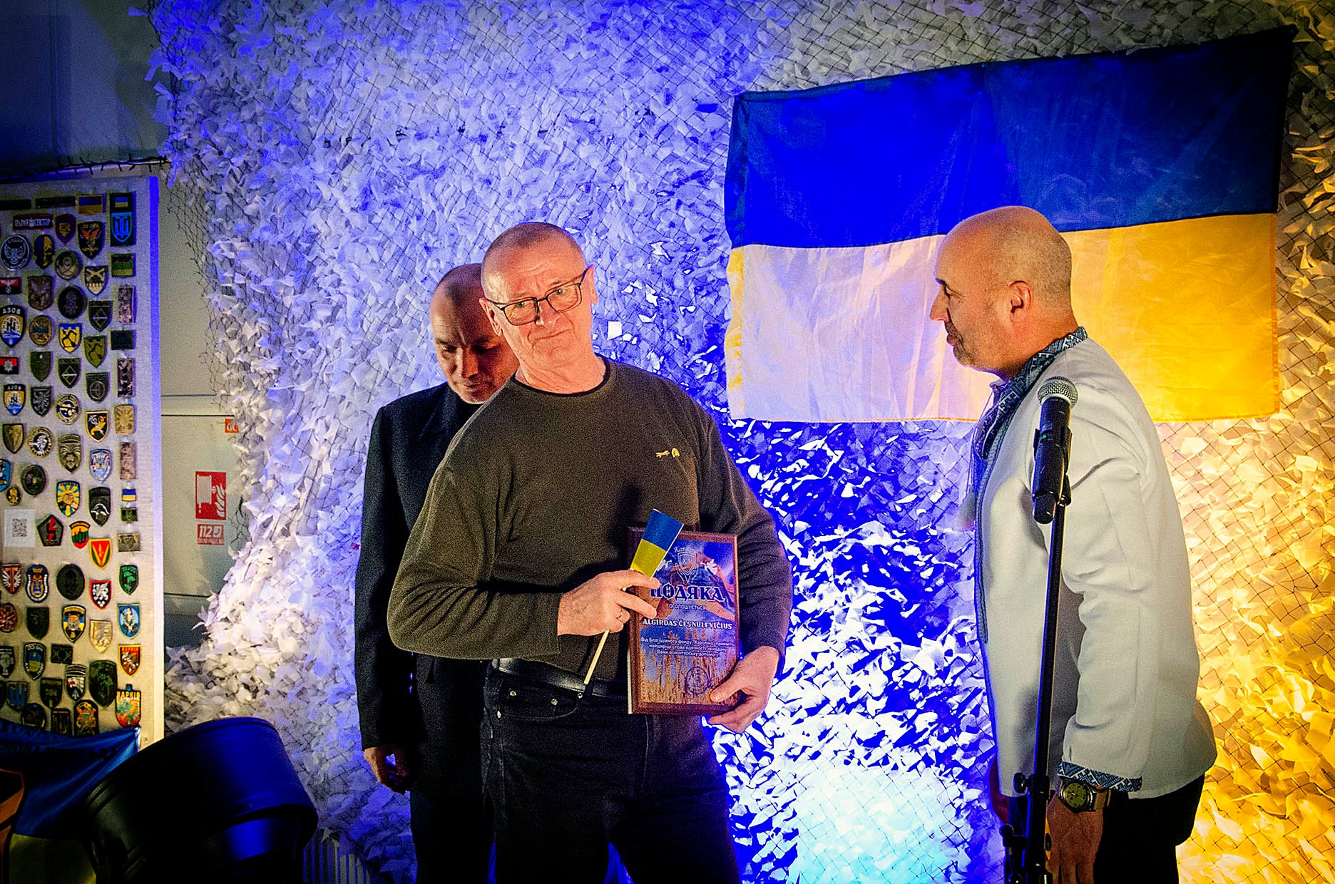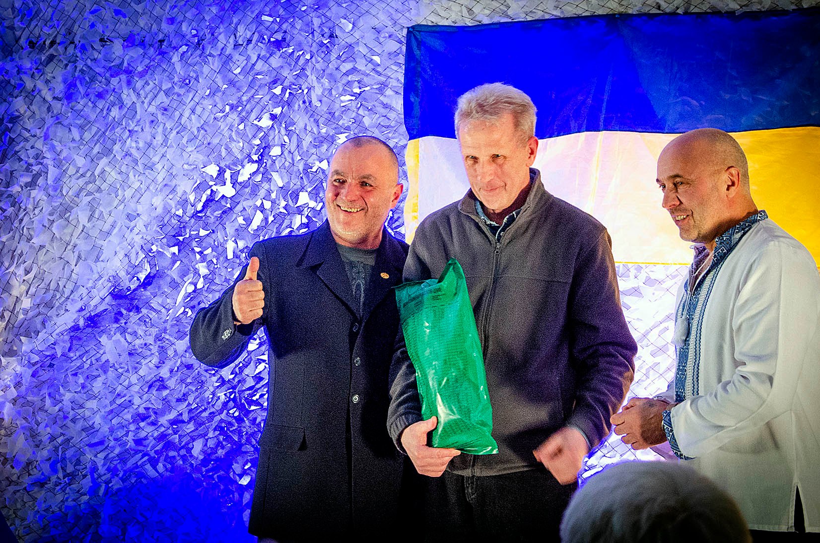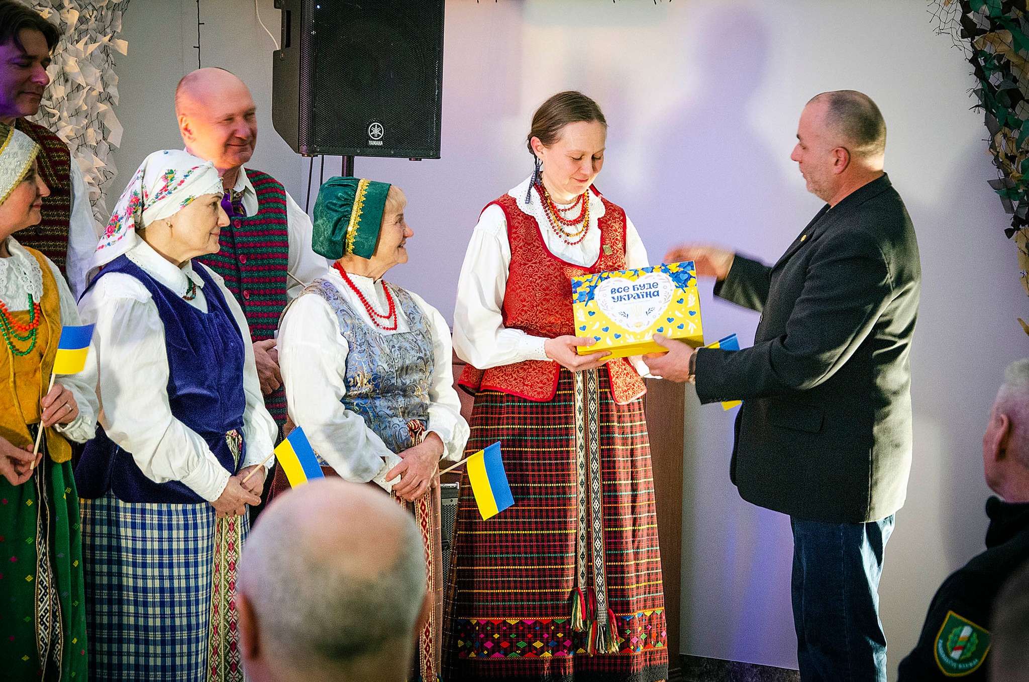 Gintautas Miškinis, aktyvus paramos Ukrainai iniciatorius Varėnos krašte, įteikė padėkas už nuolatinę paramą organizuojant humanitarines misijas dr. Eugenijui Drobeliui, Sigitui Pangoniui, Algirdui Česnulevičiui, Ginui Petkevičiui ir Pauliui Prakopimui. Savanorių ženkliukai už nuolatinę paramą organizuojant humanitarines misijas taip pat įteikti Dariui Bagdanavičiui, Ritai Tamulienei ir Birutei Guigienei.