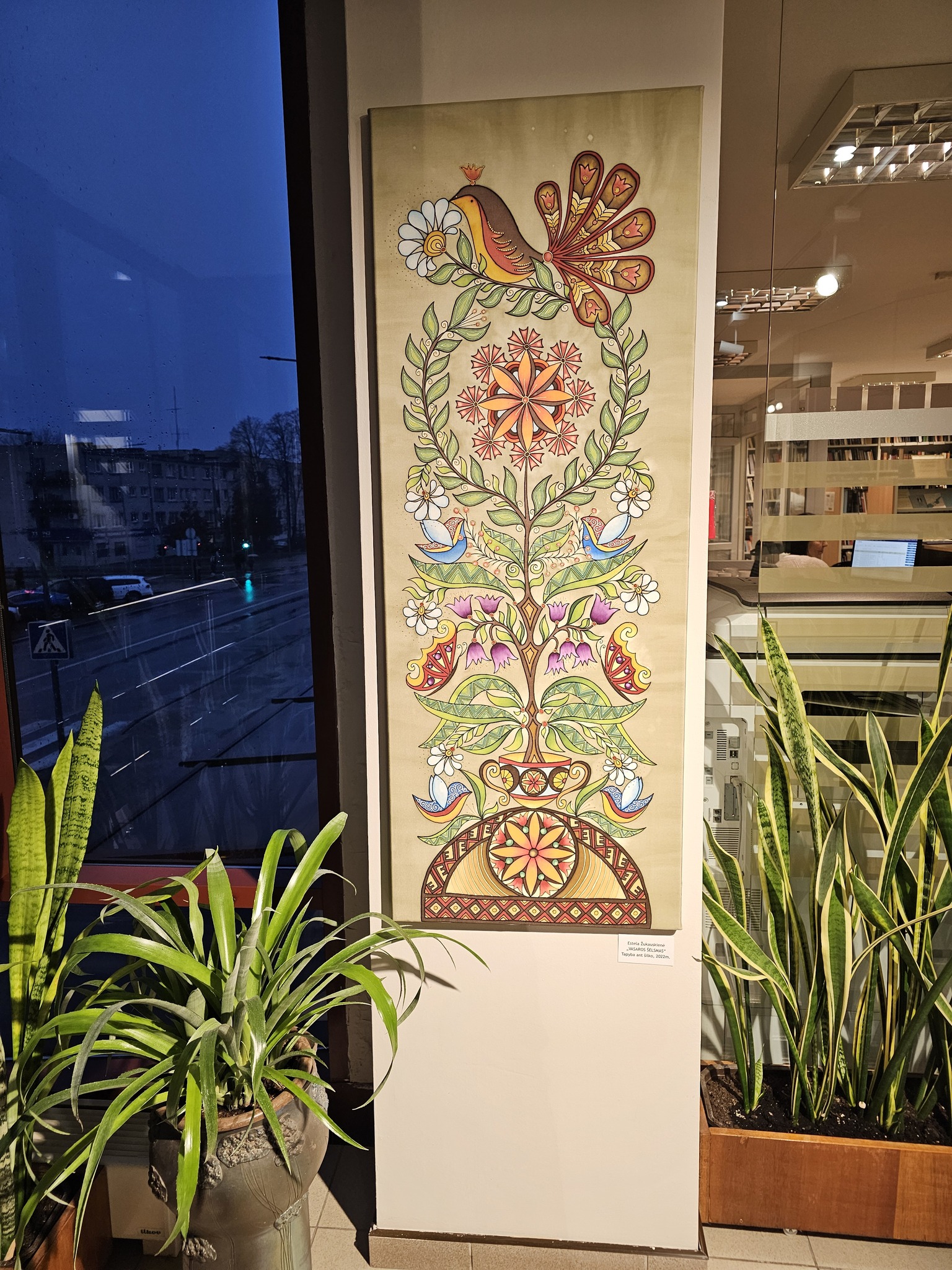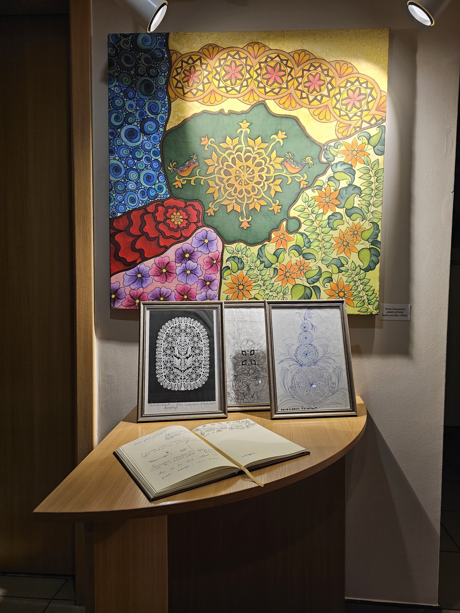 Autorė papasakojo apie šilko tapybos tradicijas, kilusias Kinijoje, atskleidė technikos subtilybes – kokį šilką ir dažus naudoja, kiek kruopštumo ir susikaupimo reikalauja kiekvienas darbas. O kaip gimsta idėjos galite pamatyti užsukę į parodą – čia rasite dailiai įrėmintus darbų eskizus, menančius istorijas ir aplinkybes, lėmusias vieno ar kito kūrinio atsiradimą.